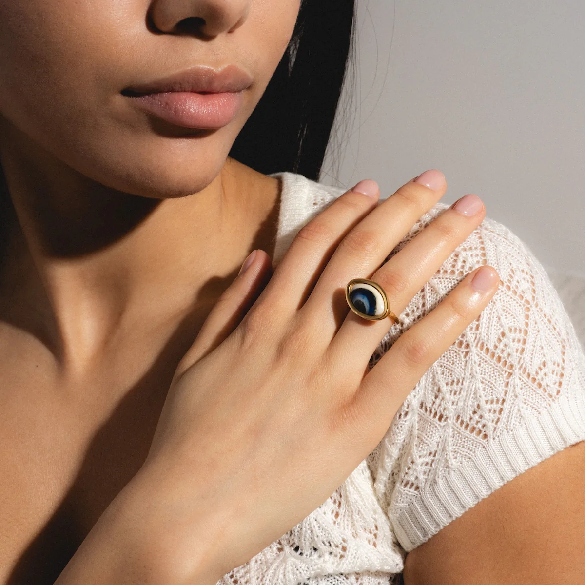 Adira Blue Porcelain Evil Eye Ring
