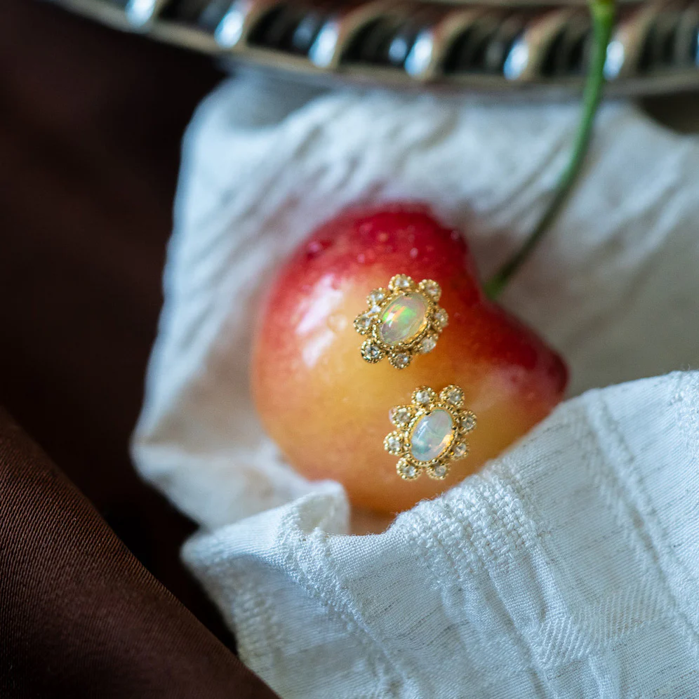 Be the star of your own regency era dreams with the Opal Majesty Studs. Crafted in fine vermeil with gorgeous Ethiopian opals and dazzling white topaz accents, these lovely studs are the perfect vintage inspired jewels for maximizing your modern wardrobe.
