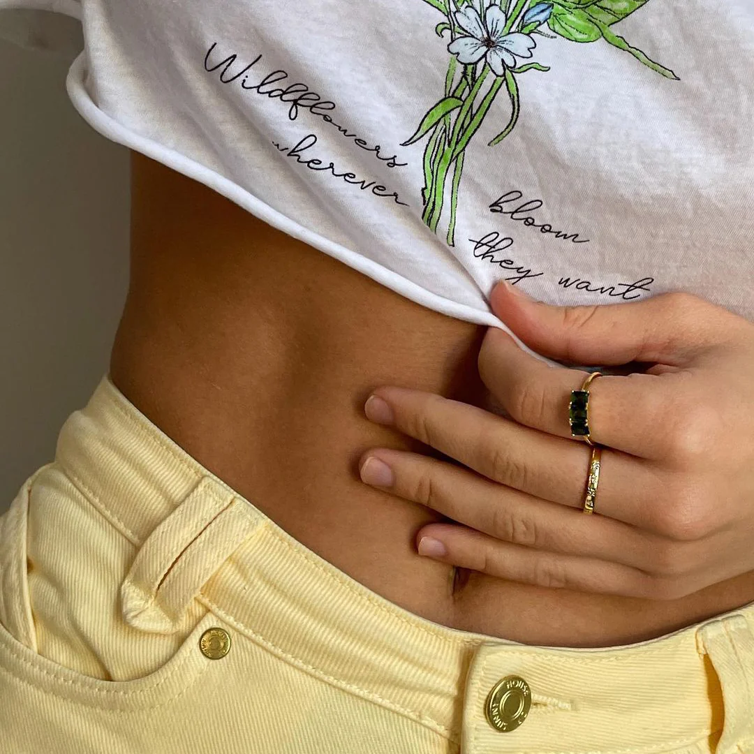A simple yet striking band featuring diamonds set as stars set in 14K yellow gold Vermeil. We love this one as a thumb or pinky ring as well!