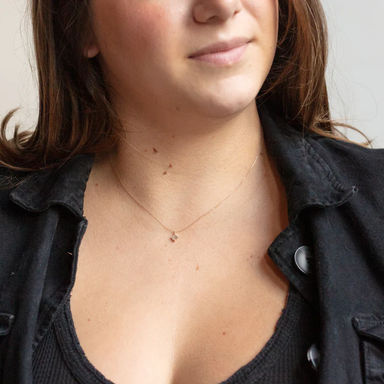 Get out of your head and back in the present! This Solid Gold Aquatic Agate Necklace for Grounding is there to help you feel more connected to yourself and to the Earth.